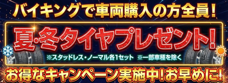 特別ダブルキャンペーン!ローン金利は全国を見渡しても1,9%というのは、なかなか見つからないと思います。全車に夏冬タイヤの両方のお渡しをお約束します!このキャンペーンは、いつやめるかわかりません!ご決断はお早めに! ※基本的にタイヤとホイールは当店でご用意する中古品とさせて頂きます。 BlueskyCopy
