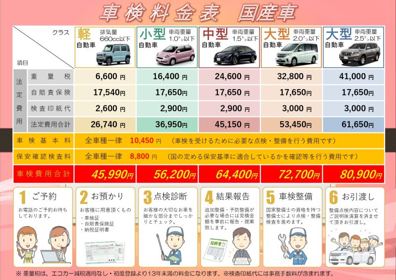 (車検に通らないような改造、当店のできる範囲を超えるような整備はお断りをすることがありますので、ご了承下さい。)